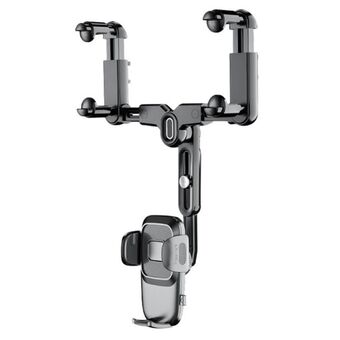 R010 Universal Vehicle Rearview Mirror Phone Holder Multifunctional Retractable Cell Phone Car Mount(Black)