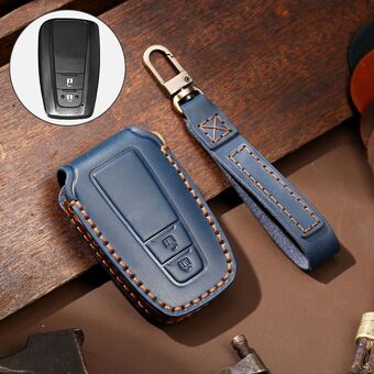 Hallmo Car Cowhide Leather Key Protective Cover Key Case for Toyota Corolla 2018 2-button(Blue) (Hallmo)