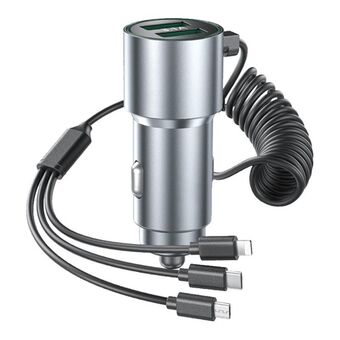 Προσαρμογέας Αυτοκινήτου K15 3 σε 1 Επεκτεινόμενο Καλώδιο 22.5W Γρήγορη Φόρτιση Αναπτήρας Διπλές Θύρες USB