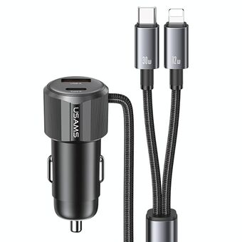 USAMS CC287 YT Series 66W USB and Type-C Dual Ports Car Fast Charger with 2 in 1 Cable(Black) (USAMS)