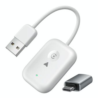 2 in 1 Apple CarPlay / Android Auto USB, Type-C Dual Ports Wired to Wireless CarPlay Adapter(White)