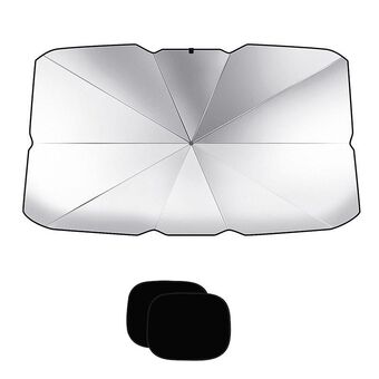 Αντηλιασίδα Αυτοκινήτου Τηλεσκοπική Αναδιπλούμενη Θερμομόνωση, Μέγεθος: Μεγάλο + 2 Τεμάχια Πλαϊνής Αντηλιακής Προστασίας.