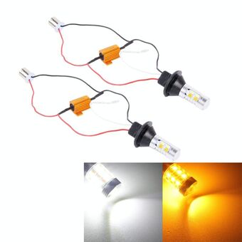 2 PCS 1156/BA15S/BAU15S 10W 1000LM 6000K White + Yellow Light DRL&Turn Light with 20 SMD-5730-LED Lamps,DC 12-24V