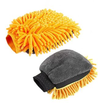 2pcs Car Chenille Coral Fleece Car Wash Double Sided Thick Gloves(Orange)