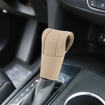 Universal Nonslip Breathable Genuine Leather Car Gear Shift Knob Cover(Beige)
