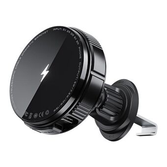 X02 With Retractable Cable 15W Car Air Vent Mount Magnetic Phone Holder Wireless Charger(Black)