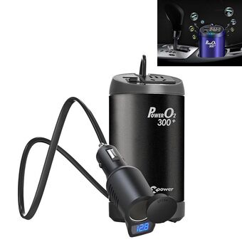 XPower T300 Plus DC 12V σε AC 220V Πολυλειτουργικός μετατροπέας ρεύματος αυτοκινήτου 2.4A USB φορτιστή προσαρμογέα + αρνητικά ιόντα καθαριστή αέρα, με λειτουργία ανίχνευσης τάσης μπαταρίας (μαύρο)