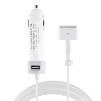 Φορτιστής αυτοκινήτου 60W 5.1V 2.1A USB Interface με καλώδιο δεδομένων διασύνδεσης 16.5V 3.65A T MagSafe 2 (λευκό)