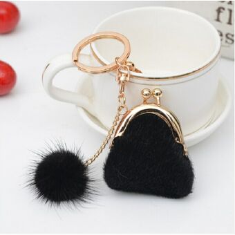 3 PCS μίνι μοναδικό μπρελόκ νόμισμα πορτοφόλι γυναίκες Pompon κουνέλι γούνα μπάλα βελούδινα κλειδί δαχτυλίδι κάτοχος κορίτσια τσάντες γοητεία γυναίκες πορτοφόλι πορτοφόλι (μαύρο)