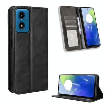 Για Motorola Moto G24 / G24 Power Μαγνητική πόρπη ρετρό υφή δερμάτινη θήκη τηλεφώνου (μαύρο)