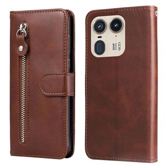 Θήκη τηλεφώνου από δέρμα με υφή μοσχαριού, τύπου flip, για Motorola Edge 50 Fusion Classic (Καφέ)