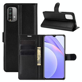 Για Xiaomi Redmi Note 9 4G Litchi υφή οριζόντια Flip προστατευτική θήκη με θήκη & υποδοχές για κάρτες & πορτοφόλι (μαύρο)