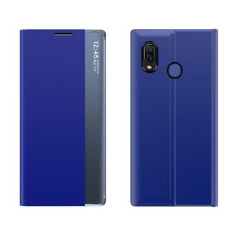 For Galaxy A20s Plain Texture Cloth Attraction Flip Holder Leather Phone Case(Blue)