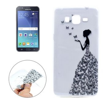For Samsung Galaxy J7 Butterfly and Girl Pattern Transparent Soft TPU Protective Back Cover Case