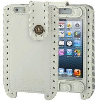 Hand-made Style Top-grain Cowhide Leather Case with Touch Pen & Screen Protector for iPhone 5 & 5s & SE & SE (White) (SHOWKOO)