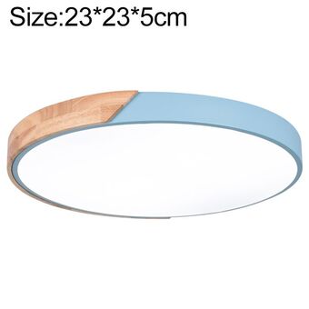 Ξύλινο Μακαρόν LED στρογγυλό φωτιστικό οροφής, λευκό φως, μέγεθος: 23cm (μπλε)