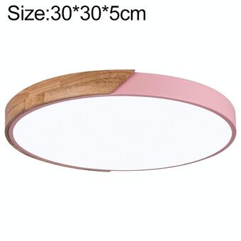 Ξύλινο μακαρόν LED στρογγυλό φωτιστικό οροφής, λευκό φως, μέγεθος: 30cm (ροζ)