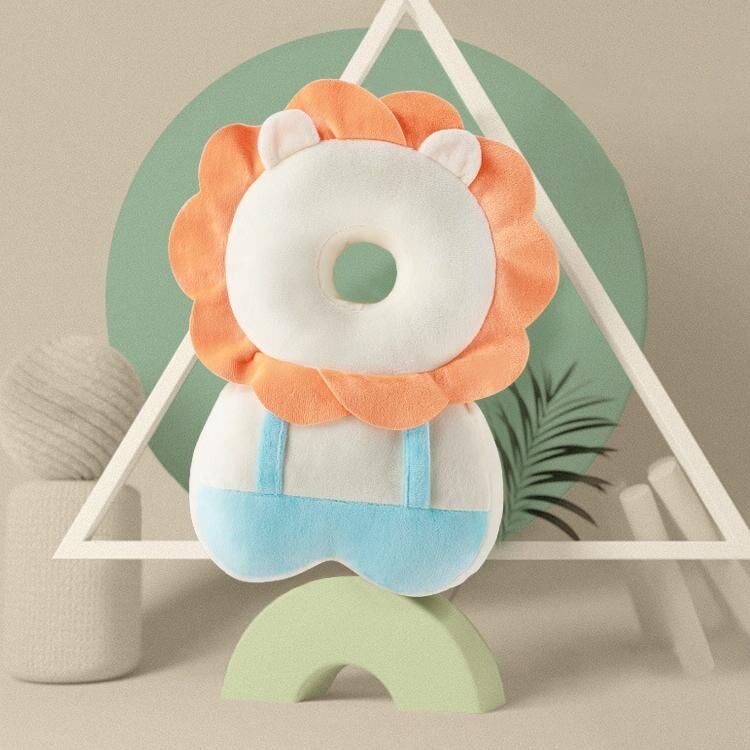 Μαξιλάρι προστασίας κεφαλιού για βρέφη και νήπια που μαθαίνουν να περπατούν, προστασία από πτώσεις κατά το κάθισμα, πυρήνας από βαμβάκι, ασφάλεια και φροντίδα, Μέγεθος: Συμβατικό (Λιοντάρι, μισό δίχτυ και μισό fleeceH)