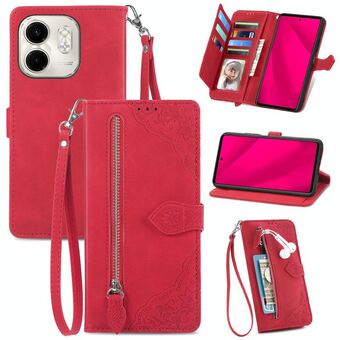 For Infinix Smart 9 Embossed Flower Zipper Leather Phone Case(Red)