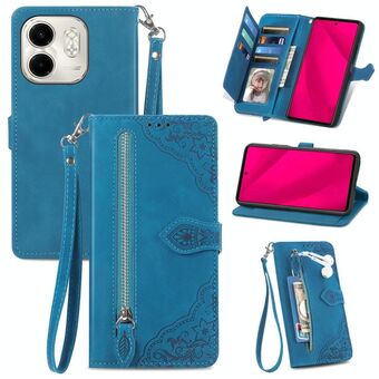 For Infinix Smart 9 Embossed Flower Zipper Leather Phone Case(Blue)