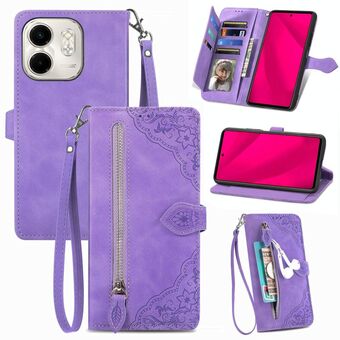 For Infinix Smart 9 Embossed Flower Zipper Leather Phone Case(Purple)