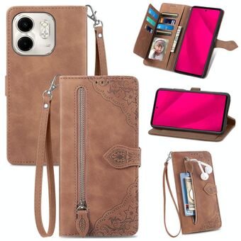 For Infinix Smart 9 Embossed Flower Zipper Leather Phone Case(Brown)