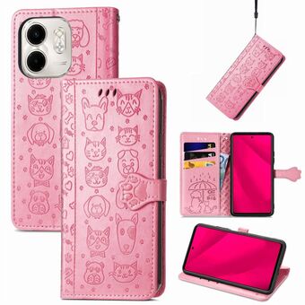 For Infinix Smart 9 Cat and Dog Embossed Leather Phone Case(Pink)