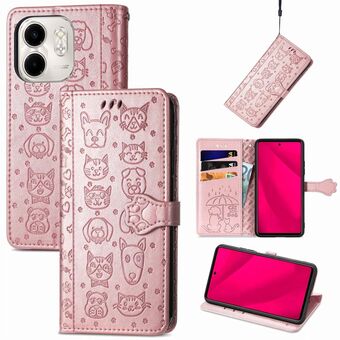 For Infinix Smart 9 Cat and Dog Embossed Leather Phone Case(Rose Gold)