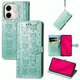 For Infinix Smart 9 Cat and Dog Embossed Leather Phone Case(Green)