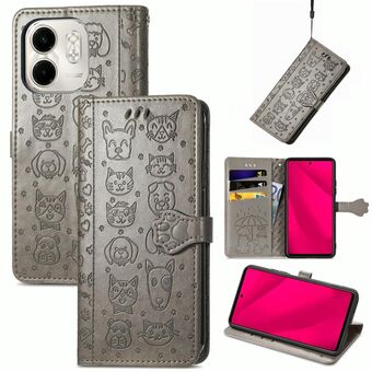 For Infinix Smart 9 Cat and Dog Embossed Leather Phone Case(Gray)