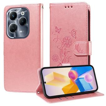 For Infinix Hot 40i Embossed Butterfly Flowers Leather Phone Case(Rose Gold)