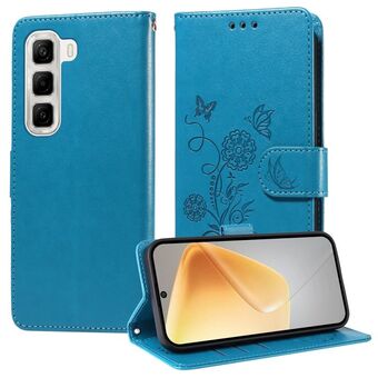 For Infinix Hot 40i Embossed Butterfly Flowers Leather Phone Case(Blue)