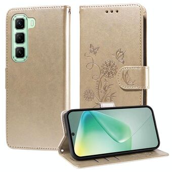 For Infinix Hot 40i Embossed Butterfly Flowers Leather Phone Case(Gold)