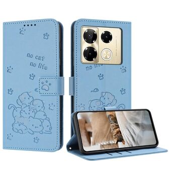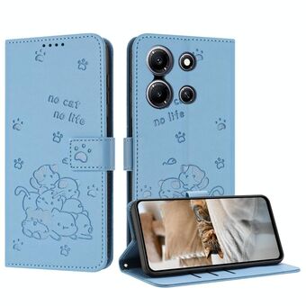 For Infinix Note 30i Embossed Kitten Phone Leather Case with Lanyard(Blue)