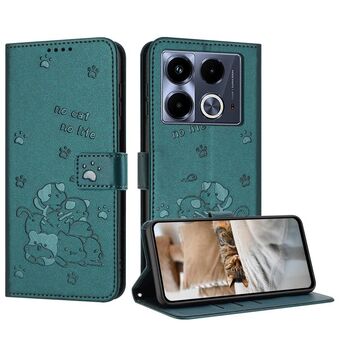 For Infinix Note 40 4G Embossed Kitten Phone Leather Case with Lanyard(Dark Green)