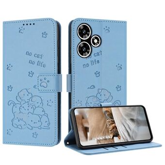For Infinix Hot 50 5G Embossed Kitten Phone Leather Case with Lanyard(Blue)