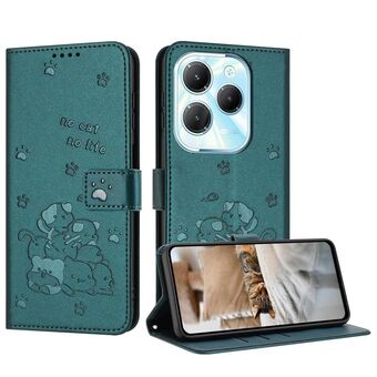 For Infinix Hot 30 4G Embossed Kitten Phone Leather Case with Lanyard(Dark Green)