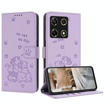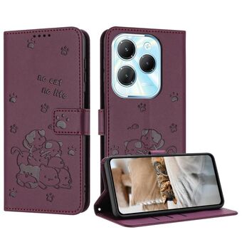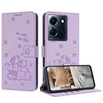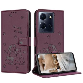 For Infinix Note 30i Embossed Kitten Phone Leather Case with Lanyard(Purple)