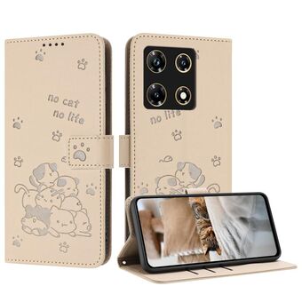 For Infinix Note 30 Pro Embossed Kitten Phone Leather Case with Lanyard(Beige)