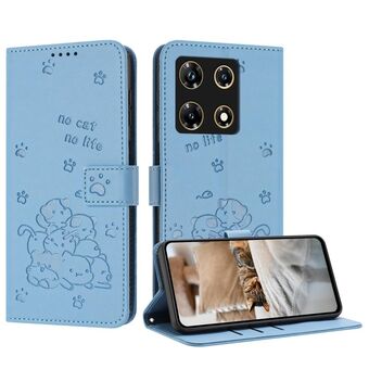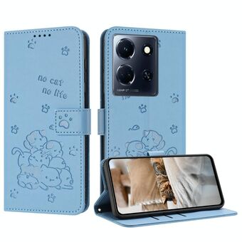 For Infinix Note 30 / Note 30 5G Embossed Kitten Phone Leather Case with Lanyard(Blue)