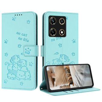 For Infinix Note 30 / Note 30 5G Embossed Kitten Phone Leather Case with Lanyard(Mint Green)