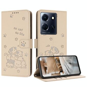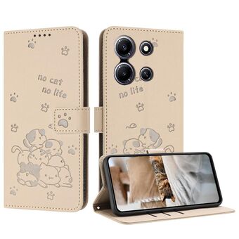 For Infinix Note 30i Embossed Kitten Phone Leather Case with Lanyard(Beige)