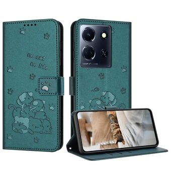 For Infinix Note 30 / Note 30 5G Embossed Kitten Phone Leather Case with Lanyard(Dark Green)