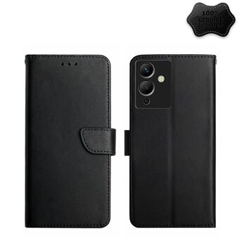 Θήκη τηλεφώνου οριζόντιας αναδίπλωσης από γνήσιο δέρμα για Infinix Note 12 G96, ανθεκτική στα δακτυλικά αποτυπώματα (Μαύρο)