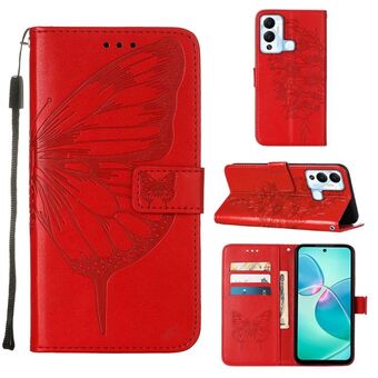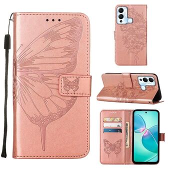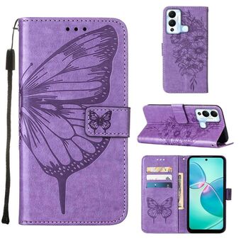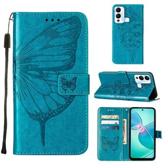 Θήκη τηλεφώνου από δέρμα με σχέδιο πεταλούδας σε ανάγλυφο για Infinix Hot 12 Play/Hot 12 Play NFC X6816C (Μπλε)
