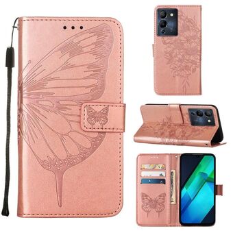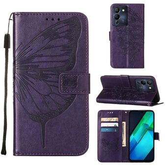 Θήκη τηλεφώνου από δέρμα με ανάγλυφο σχέδιο πεταλούδας και λειτουργία flip για Infinix Note 12 G96 (Μπλε)