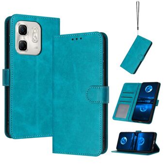 For Infinix Hot 50i Skin Feel Stripe Pattern Leather Phone Case with Lanyard(Brown)
