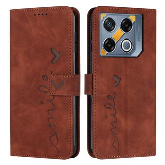 For Infinix Note 40 5G Skin Feel Heart Embossed Leather Phone Case with Long Lanyard(Brown)