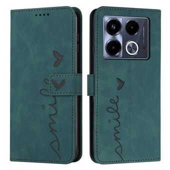 For Infinix Note 40 5G Skin Feel Heart Embossed Leather Phone Case with Long Lanyard(Green)