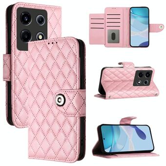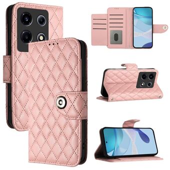For Infinix Note 40 4G Rhombic Texture Flip Leather Phone Case with Lanyard(Pink)